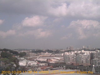 適度に曇った日の雲の動き (例: 2005-10-24) がとても楽しめます。 正面を横切っている高架は横須賀線下りです。 その下に横須賀線上り、東海道線、同貨物線が走っていますが、 高架に隠れていてよく見えません。 夜間は特に中央左寄りの車の動きがよく見えます。