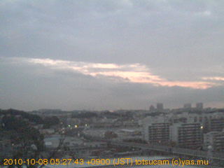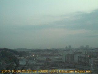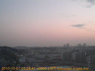 横浜市戸塚駅周辺から 東戸塚方面(北北東)を望む展望カメラの映像です。 左は現在の映像です。 下に並んでいるのは、 7日間に亘る日の出どき、昼間、夕暮れどきの写真(サムネイル)です。 それぞれ、日の出15分前、南中時、日没20分後の写真となっています。 各写真の下にはmpeg形式の動画へのリンクがあります。 それぞれ、日の出、南中、日没の前後1時間の画像です。 右欄にはその日24時間の動画へのリンクがあります。 この7日間以外は日付が一覧表示されています。 日付部分をクリックすると、 その日付から7日分が展開されて表示されます。
