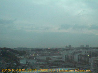 横浜市戸塚駅周辺から 東戸塚方面(北北東)を望む展望カメラの映像です。 左は現在の映像です。 下に並んでいるのは、 7日間に亘る日の出どき、昼間、夕暮れどきの写真(サムネイル)です。 それぞれ、日の出15分前、南中時、日没20分後の写真となっています。 各写真の下にはmpeg形式の動画へのリンクがあります。 それぞれ、日の出、南中、日没の前後1時間の画像です。 右欄にはその日24時間の動画へのリンクがあります。 この7日間以外は日付が一覧表示されています。 日付部分をクリックすると、 その日付から7日分が展開されて表示されます。