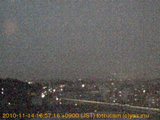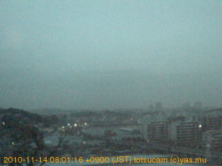 横浜市戸塚駅周辺から 東戸塚方面(北北東)を望む展望カメラの映像です。 左は現在の映像です。 下に並んでいるのは、 7日間に亘る日の出どき、昼間、夕暮れどきの写真(サムネイル)です。 それぞれ、日の出15分前、南中時、日没20分後の写真となっています。 各写真の下にはmpeg形式の動画へのリンクがあります。 それぞれ、日の出、南中、日没の前後1時間の画像です。 右欄にはその日24時間の動画へのリンクがあります。 この7日間以外は日付が一覧表示されています。 日付部分をクリックすると、 その日付から7日分が展開されて表示されます。
