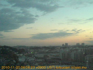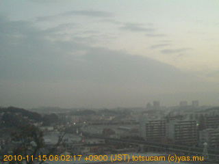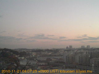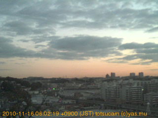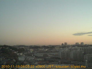 横浜市戸塚駅周辺から 東戸塚方面(北北東)を望む展望カメラの映像です。 左は現在の映像です。 下に並んでいるのは、 7日間に亘る日の出どき、昼間、夕暮れどきの写真(サムネイル)です。 それぞれ、日の出15分前、南中時、日没20分後の写真となっています。 各写真の下にはmpeg形式の動画へのリンクがあります。 それぞれ、日の出、南中、日没の前後1時間の画像です。 右欄にはその日24時間の動画へのリンクがあります。 この7日間以外は日付が一覧表示されています。 日付部分をクリックすると、 その日付から7日分が展開されて表示されます。