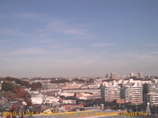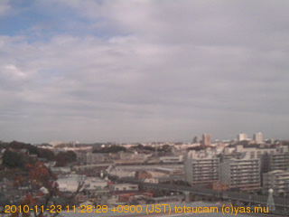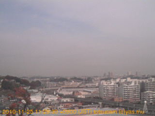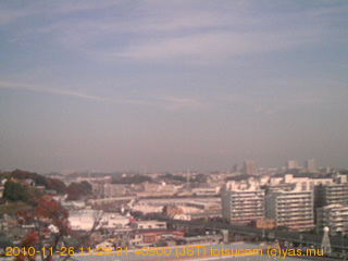 適度に曇った日の雲の動き (例: 2005-10-24) がとても楽しめます。 正面を横切っている高架は横須賀線下りです。 その下に横須賀線上り、東海道線、同貨物線が走っていますが、 高架に隠れていてよく見えません。 夜間は特に中央左寄りの車の動きがよく見えます。