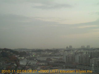 横浜市戸塚駅周辺から 東戸塚方面(北北東)を望む展望カメラの映像です。 左は現在の映像です。 下に並んでいるのは、 7日間に亘る日の出どき、昼間、夕暮れどきの写真(サムネイル)です。 それぞれ、日の出15分前、南中時、日没20分後の写真となっています。 各写真の下にはmpeg形式の動画へのリンクがあります。 それぞれ、日の出、南中、日没の前後1時間の画像です。 右欄にはその日24時間の動画へのリンクがあります。 この7日間以外は日付が一覧表示されています。 日付部分をクリックすると、 その日付から7日分が展開されて表示されます。