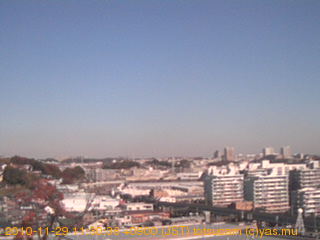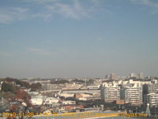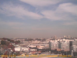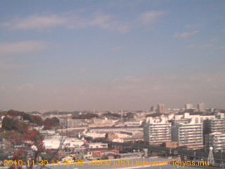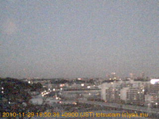 適度に曇った日の雲の動き (例: 2005-10-24) がとても楽しめます。 正面を横切っている高架は横須賀線下りです。 その下に横須賀線上り、東海道線、同貨物線が走っていますが、 高架に隠れていてよく見えません。 夜間は特に中央左寄りの車の動きがよく見えます。