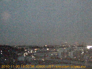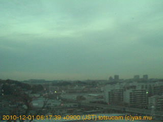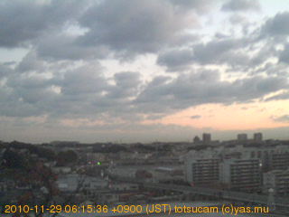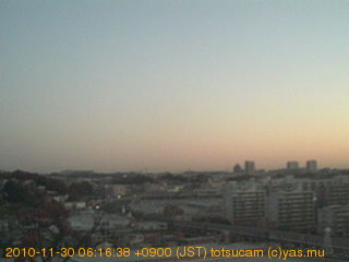 横浜市戸塚駅周辺から 東戸塚方面(北北東)を望む展望カメラの映像です。 左は現在の映像です。 下に並んでいるのは、 7日間に亘る日の出どき、昼間、夕暮れどきの写真(サムネイル)です。 それぞれ、日の出15分前、南中時、日没20分後の写真となっています。 各写真の下にはmpeg形式の動画へのリンクがあります。 それぞれ、日の出、南中、日没の前後1時間の画像です。 右欄にはその日24時間の動画へのリンクがあります。 この7日間以外は日付が一覧表示されています。 日付部分をクリックすると、 その日付から7日分が展開されて表示されます。