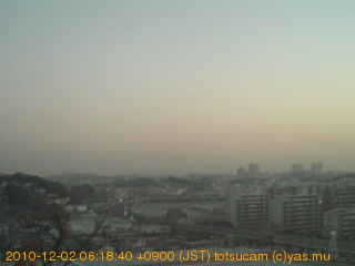 横浜市戸塚駅周辺から 東戸塚方面(北北東)を望む展望カメラの映像です。 左は現在の映像です。 下に並んでいるのは、 7日間に亘る日の出どき、昼間、夕暮れどきの写真(サムネイル)です。 それぞれ、日の出15分前、南中時、日没20分後の写真となっています。 各写真の下にはmpeg形式の動画へのリンクがあります。 それぞれ、日の出、南中、日没の前後1時間の画像です。 右欄にはその日24時間の動画へのリンクがあります。 この7日間以外は日付が一覧表示されています。 日付部分をクリックすると、 その日付から7日分が展開されて表示されます。