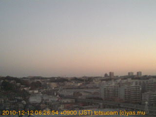 横浜市戸塚駅周辺から 東戸塚方面(北北東)を望む展望カメラの映像です。 左は現在の映像です。 下に並んでいるのは、 7日間に亘る日の出どき、昼間、夕暮れどきの写真(サムネイル)です。 それぞれ、日の出15分前、南中時、日没20分後の写真となっています。 各写真の下にはmpeg形式の動画へのリンクがあります。 それぞれ、日の出、南中、日没の前後1時間の画像です。 右欄にはその日24時間の動画へのリンクがあります。 この7日間以外は日付が一覧表示されています。 日付部分をクリックすると、 その日付から7日分が展開されて表示されます。