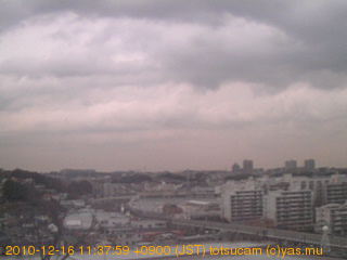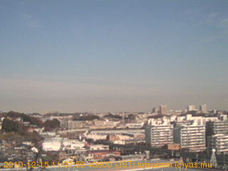 適度に曇った日の雲の動き (例: 2005-10-24) がとても楽しめます。 正面を横切っている高架は横須賀線下りです。 その下に横須賀線上り、東海道線、同貨物線が走っていますが、 高架に隠れていてよく見えません。 夜間は特に中央左寄りの車の動きがよく見えます。