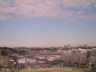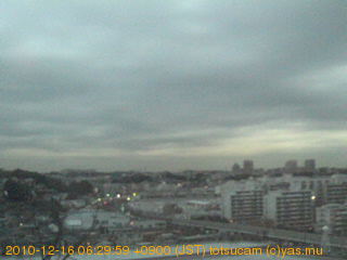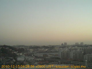 横浜市戸塚駅周辺から 東戸塚方面(北北東)を望む展望カメラの映像です。 左は現在の映像です。 下に並んでいるのは、 7日間に亘る日の出どき、昼間、夕暮れどきの写真(サムネイル)です。 それぞれ、日の出15分前、南中時、日没20分後の写真となっています。 各写真の下にはmpeg形式の動画へのリンクがあります。 それぞれ、日の出、南中、日没の前後1時間の画像です。 右欄にはその日24時間の動画へのリンクがあります。 この7日間以外は日付が一覧表示されています。 日付部分をクリックすると、 その日付から7日分が展開されて表示されます。