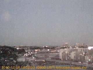 横浜市戸塚駅周辺から 東戸塚方面(北北東)を望む展望カメラの映像です。 左は現在の映像です。 下に並んでいるのは、 7日間に亘る日の出どき、昼間、夕暮れどきの写真(サムネイル)です。 それぞれ、日の出15分前、南中時、日没20分後の写真となっています。 各写真の下にはmpeg形式の動画へのリンクがあります。 それぞれ、日の出、南中、日没の前後1時間の画像です。 右欄にはその日24時間の動画へのリンクがあります。 この7日間以外は日付が一覧表示されています。 日付部分をクリックすると、 その日付から7日分が展開されて表示されます。