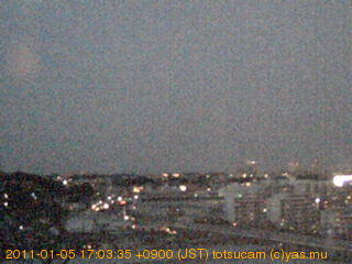 横浜市戸塚駅周辺から 東戸塚方面(北北東)を望む展望カメラの映像です。 左は現在の映像です。 下に並んでいるのは、 7日間に亘る日の出どき、昼間、夕暮れどきの写真(サムネイル)です。 それぞれ、日の出15分前、南中時、日没20分後の写真となっています。 各写真の下にはmpeg形式の動画へのリンクがあります。 それぞれ、日の出、南中、日没の前後1時間の画像です。 右欄にはその日24時間の動画へのリンクがあります。 この7日間以外は日付が一覧表示されています。 日付部分をクリックすると、 その日付から7日分が展開されて表示されます。