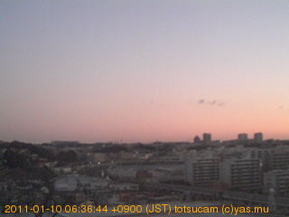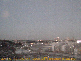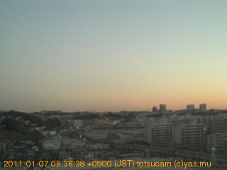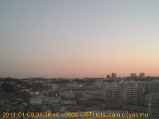 横浜市戸塚駅周辺から 東戸塚方面(北北東)を望む展望カメラの映像です。 左は現在の映像です。 下に並んでいるのは、 7日間に亘る日の出どき、昼間、夕暮れどきの写真(サムネイル)です。 それぞれ、日の出15分前、南中時、日没20分後の写真となっています。 各写真の下にはmpeg形式の動画へのリンクがあります。 それぞれ、日の出、南中、日没の前後1時間の画像です。 右欄にはその日24時間の動画へのリンクがあります。 この7日間以外は日付が一覧表示されています。 日付部分をクリックすると、 その日付から7日分が展開されて表示されます。