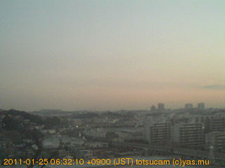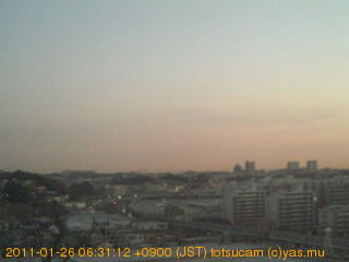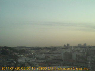 横浜市戸塚駅周辺から 東戸塚方面(北北東)を望む展望カメラの映像です。 左は現在の映像です。 下に並んでいるのは、 7日間に亘る日の出どき、昼間、夕暮れどきの写真(サムネイル)です。 それぞれ、日の出15分前、南中時、日没20分後の写真となっています。 各写真の下にはmpeg形式の動画へのリンクがあります。 それぞれ、日の出、南中、日没の前後1時間の画像です。 右欄にはその日24時間の動画へのリンクがあります。 この7日間以外は日付が一覧表示されています。 日付部分をクリックすると、 その日付から7日分が展開されて表示されます。