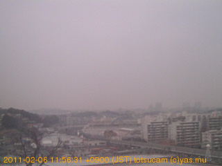 適度に曇った日の雲の動き (例: 2005-10-24) がとても楽しめます。 正面を横切っている高架は横須賀線下りです。 その下に横須賀線上り、東海道線、同貨物線が走っていますが、 高架に隠れていてよく見えません。 夜間は特に中央左寄りの車の動きがよく見えます。