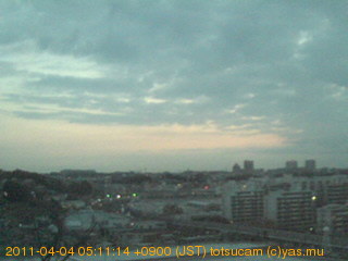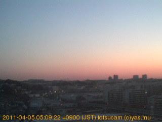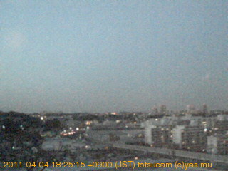 横浜市戸塚駅周辺から 東戸塚方面(北北東)を望む展望カメラの映像です。 左は現在の映像です。 下に並んでいるのは、 7日間に亘る日の出どき、昼間、夕暮れどきの写真(サムネイル)です。 それぞれ、日の出15分前、南中時、日没20分後の写真となっています。 各写真の下にはmpeg形式の動画へのリンクがあります。 それぞれ、日の出、南中、日没の前後1時間の画像です。 右欄にはその日24時間の動画へのリンクがあります。 この7日間以外は日付が一覧表示されています。 日付部分をクリックすると、 その日付から7日分が展開されて表示されます。