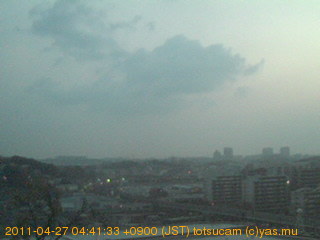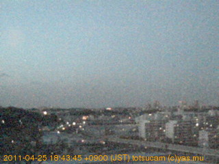 横浜市戸塚駅周辺から 東戸塚方面(北北東)を望む展望カメラの映像です。 左は現在の映像です。 下に並んでいるのは、 7日間に亘る日の出どき、昼間、夕暮れどきの写真(サムネイル)です。 それぞれ、日の出15分前、南中時、日没20分後の写真となっています。 各写真の下にはmpeg形式の動画へのリンクがあります。 それぞれ、日の出、南中、日没の前後1時間の画像です。 右欄にはその日24時間の動画へのリンクがあります。 この7日間以外は日付が一覧表示されています。 日付部分をクリックすると、 その日付から7日分が展開されて表示されます。