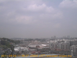 適度に曇った日の雲の動き (例: 2005-10-24) がとても楽しめます。 正面を横切っている高架は横須賀線下りです。 その下に横須賀線上り、東海道線、同貨物線が走っていますが、 高架に隠れていてよく見えません。 夜間は特に中央左寄りの車の動きがよく見えます。