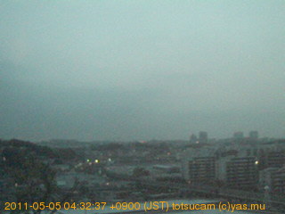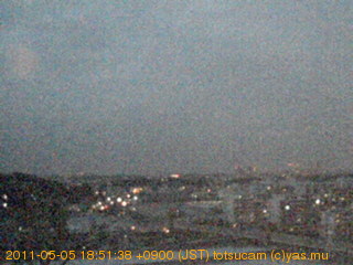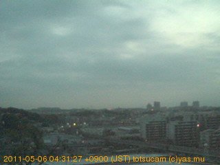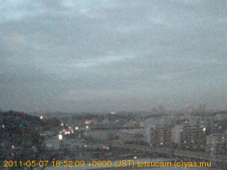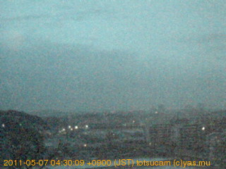 横浜市戸塚駅周辺から 東戸塚方面(北北東)を望む展望カメラの映像です。 左は現在の映像です。 下に並んでいるのは、 7日間に亘る日の出どき、昼間、夕暮れどきの写真(サムネイル)です。 それぞれ、日の出15分前、南中時、日没20分後の写真となっています。 各写真の下にはmpeg形式の動画へのリンクがあります。 それぞれ、日の出、南中、日没の前後1時間の画像です。 右欄にはその日24時間の動画へのリンクがあります。 この7日間以外は日付が一覧表示されています。 日付部分をクリックすると、 その日付から7日分が展開されて表示されます。