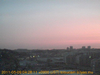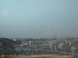 横浜市戸塚駅周辺から 東戸塚方面(北北東)を望む展望カメラの映像です。 左は現在の映像です。 下に並んでいるのは、 7日間に亘る日の出どき、昼間、夕暮れどきの写真(サムネイル)です。 それぞれ、日の出15分前、南中時、日没20分後の写真となっています。 各写真の下にはmpeg形式の動画へのリンクがあります。 それぞれ、日の出、南中、日没の前後1時間の画像です。 右欄にはその日24時間の動画へのリンクがあります。 この7日間以外は日付が一覧表示されています。 日付部分をクリックすると、 その日付から7日分が展開されて表示されます。