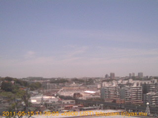適度に曇った日の雲の動き (例: 2005-10-24) がとても楽しめます。 正面を横切っている高架は横須賀線下りです。 その下に横須賀線上り、東海道線、同貨物線が走っていますが、 高架に隠れていてよく見えません。 夜間は特に中央左寄りの車の動きがよく見えます。
