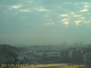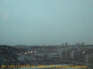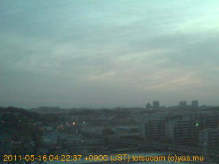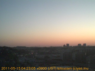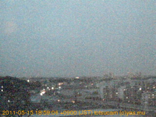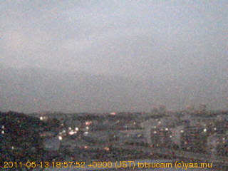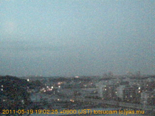 横浜市戸塚駅周辺から 東戸塚方面(北北東)を望む展望カメラの映像です。 左は現在の映像です。 下に並んでいるのは、 7日間に亘る日の出どき、昼間、夕暮れどきの写真(サムネイル)です。 それぞれ、日の出15分前、南中時、日没20分後の写真となっています。 各写真の下にはmpeg形式の動画へのリンクがあります。 それぞれ、日の出、南中、日没の前後1時間の画像です。 右欄にはその日24時間の動画へのリンクがあります。 この7日間以外は日付が一覧表示されています。 日付部分をクリックすると、 その日付から7日分が展開されて表示されます。