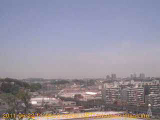 適度に曇った日の雲の動き (例: 2005-10-24) がとても楽しめます。 正面を横切っている高架は横須賀線下りです。 その下に横須賀線上り、東海道線、同貨物線が走っていますが、 高架に隠れていてよく見えません。 夜間は特に中央左寄りの車の動きがよく見えます。