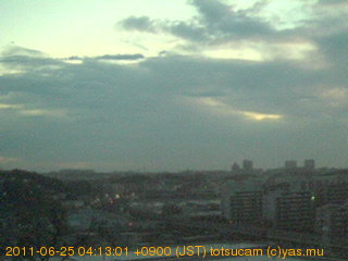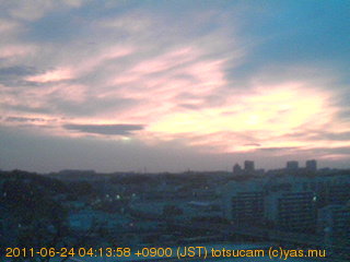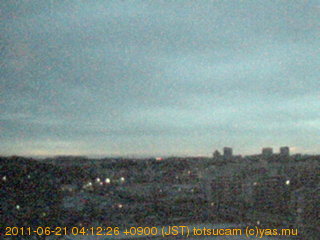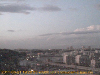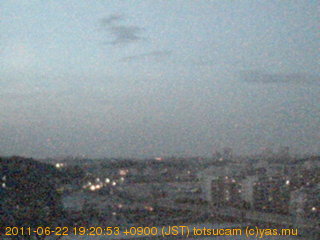 横浜市戸塚駅周辺から 東戸塚方面(北北東)を望む展望カメラの映像です。 左は現在の映像です。 下に並んでいるのは、 7日間に亘る日の出どき、昼間、夕暮れどきの写真(サムネイル)です。 それぞれ、日の出15分前、南中時、日没20分後の写真となっています。 各写真の下にはmpeg形式の動画へのリンクがあります。 それぞれ、日の出、南中、日没の前後1時間の画像です。 右欄にはその日24時間の動画へのリンクがあります。 この7日間以外は日付が一覧表示されています。 日付部分をクリックすると、 その日付から7日分が展開されて表示されます。