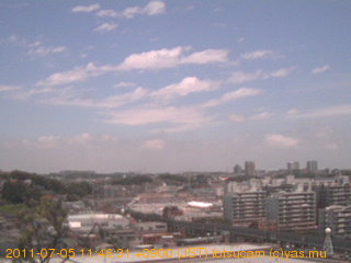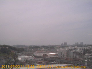 適度に曇った日の雲の動き (例: 2005-10-24) がとても楽しめます。 正面を横切っている高架は横須賀線下りです。 その下に横須賀線上り、東海道線、同貨物線が走っていますが、 高架に隠れていてよく見えません。 夜間は特に中央左寄りの車の動きがよく見えます。