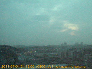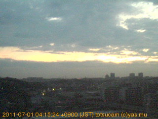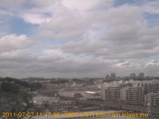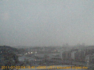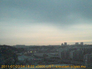 横浜市戸塚駅周辺から 東戸塚方面(北北東)を望む展望カメラの映像です。 左は現在の映像です。 下に並んでいるのは、 7日間に亘る日の出どき、昼間、夕暮れどきの写真(サムネイル)です。 それぞれ、日の出15分前、南中時、日没20分後の写真となっています。 各写真の下にはmpeg形式の動画へのリンクがあります。 それぞれ、日の出、南中、日没の前後1時間の画像です。 右欄にはその日24時間の動画へのリンクがあります。 この7日間以外は日付が一覧表示されています。 日付部分をクリックすると、 その日付から7日分が展開されて表示されます。