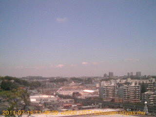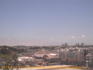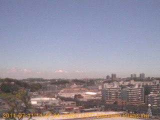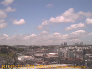 適度に曇った日の雲の動き (例: 2005-10-24) がとても楽しめます。 正面を横切っている高架は横須賀線下りです。 その下に横須賀線上り、東海道線、同貨物線が走っていますが、 高架に隠れていてよく見えません。 夜間は特に中央左寄りの車の動きがよく見えます。