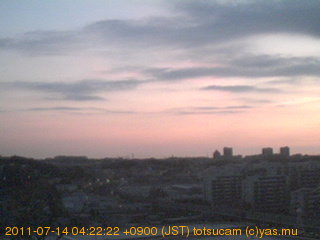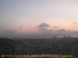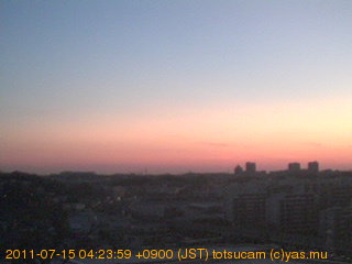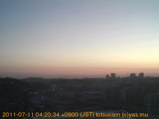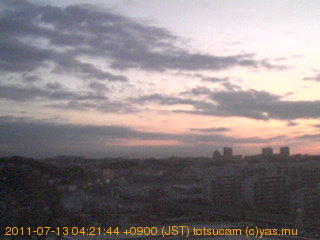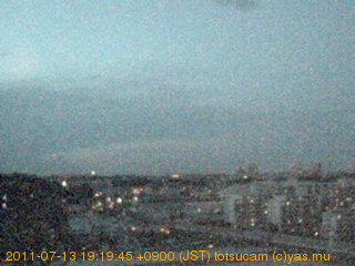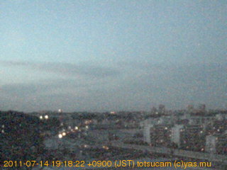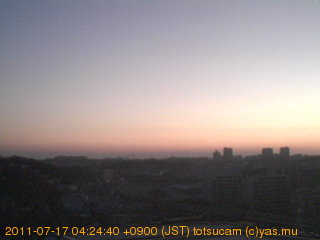横浜市戸塚駅周辺から 東戸塚方面(北北東)を望む展望カメラの映像です。 左は現在の映像です。 下に並んでいるのは、 7日間に亘る日の出どき、昼間、夕暮れどきの写真(サムネイル)です。 それぞれ、日の出15分前、南中時、日没20分後の写真となっています。 各写真の下にはmpeg形式の動画へのリンクがあります。 それぞれ、日の出、南中、日没の前後1時間の画像です。 右欄にはその日24時間の動画へのリンクがあります。 この7日間以外は日付が一覧表示されています。 日付部分をクリックすると、 その日付から7日分が展開されて表示されます。