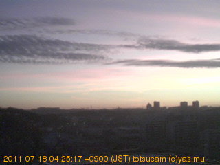 横浜市戸塚駅周辺から 東戸塚方面(北北東)を望む展望カメラの映像です。 左は現在の映像です。 下に並んでいるのは、 7日間に亘る日の出どき、昼間、夕暮れどきの写真(サムネイル)です。 それぞれ、日の出15分前、南中時、日没20分後の写真となっています。 各写真の下にはmpeg形式の動画へのリンクがあります。 それぞれ、日の出、南中、日没の前後1時間の画像です。 右欄にはその日24時間の動画へのリンクがあります。 この7日間以外は日付が一覧表示されています。 日付部分をクリックすると、 その日付から7日分が展開されて表示されます。