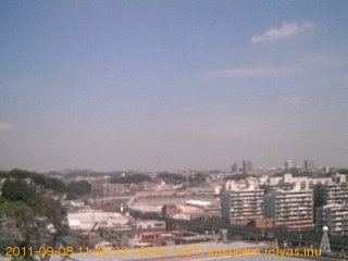 適度に曇った日の雲の動き (例: 2005-10-24) がとても楽しめます。 正面を横切っている高架は横須賀線下りです。 その下に横須賀線上り、東海道線、同貨物線が走っていますが、 高架に隠れていてよく見えません。 夜間は特に中央左寄りの車の動きがよく見えます。