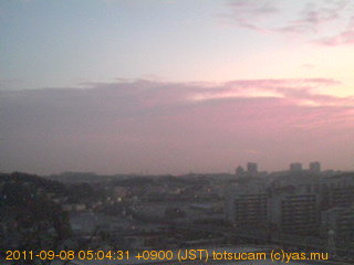 横浜市戸塚駅周辺から 東戸塚方面(北北東)を望む展望カメラの映像です。 左は現在の映像です。 下に並んでいるのは、 7日間に亘る日の出どき、昼間、夕暮れどきの写真(サムネイル)です。 それぞれ、日の出15分前、南中時、日没20分後の写真となっています。 各写真の下にはmpeg形式の動画へのリンクがあります。 それぞれ、日の出、南中、日没の前後1時間の画像です。 右欄にはその日24時間の動画へのリンクがあります。 この7日間以外は日付が一覧表示されています。 日付部分をクリックすると、 その日付から7日分が展開されて表示されます。