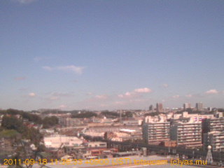 適度に曇った日の雲の動き (例: 2005-10-24) がとても楽しめます。 正面を横切っている高架は横須賀線下りです。 その下に横須賀線上り、東海道線、同貨物線が走っていますが、 高架に隠れていてよく見えません。 夜間は特に中央左寄りの車の動きがよく見えます。