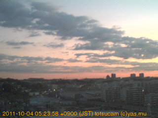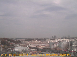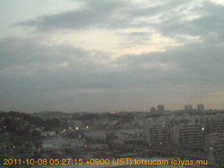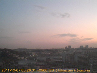 横浜市戸塚駅周辺から 東戸塚方面(北北東)を望む展望カメラの映像です。 左は現在の映像です。 下に並んでいるのは、 7日間に亘る日の出どき、昼間、夕暮れどきの写真(サムネイル)です。 それぞれ、日の出15分前、南中時、日没20分後の写真となっています。 各写真の下にはmpeg形式の動画へのリンクがあります。 それぞれ、日の出、南中、日没の前後1時間の画像です。 右欄にはその日24時間の動画へのリンクがあります。 この7日間以外は日付が一覧表示されています。 日付部分をクリックすると、 その日付から7日分が展開されて表示されます。