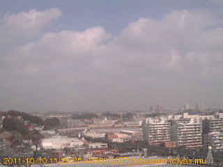適度に曇った日の雲の動き (例: 2005-10-24) がとても楽しめます。 正面を横切っている高架は横須賀線下りです。 その下に横須賀線上り、東海道線、同貨物線が走っていますが、 高架に隠れていてよく見えません。 夜間は特に中央左寄りの車の動きがよく見えます。