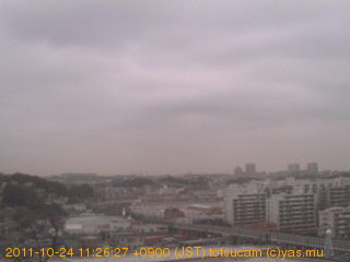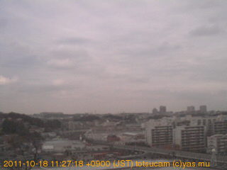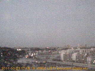 適度に曇った日の雲の動き (例: 2005-10-24) がとても楽しめます。 正面を横切っている高架は横須賀線下りです。 その下に横須賀線上り、東海道線、同貨物線が走っていますが、 高架に隠れていてよく見えません。 夜間は特に中央左寄りの車の動きがよく見えます。