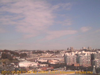 適度に曇った日の雲の動き (例: 2005-10-24) がとても楽しめます。 正面を横切っている高架は横須賀線下りです。 その下に横須賀線上り、東海道線、同貨物線が走っていますが、 高架に隠れていてよく見えません。 夜間は特に中央左寄りの車の動きがよく見えます。