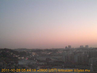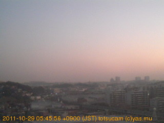 横浜市戸塚駅周辺から 東戸塚方面(北北東)を望む展望カメラの映像です。 左は現在の映像です。 下に並んでいるのは、 7日間に亘る日の出どき、昼間、夕暮れどきの写真(サムネイル)です。 それぞれ、日の出15分前、南中時、日没20分後の写真となっています。 各写真の下にはmpeg形式の動画へのリンクがあります。 それぞれ、日の出、南中、日没の前後1時間の画像です。 右欄にはその日24時間の動画へのリンクがあります。 この7日間以外は日付が一覧表示されています。 日付部分をクリックすると、 その日付から7日分が展開されて表示されます。