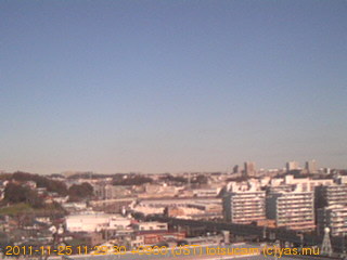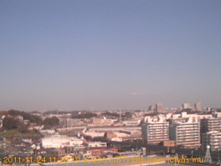 適度に曇った日の雲の動き (例: 2005-10-24) がとても楽しめます。 正面を横切っている高架は横須賀線下りです。 その下に横須賀線上り、東海道線、同貨物線が走っていますが、 高架に隠れていてよく見えません。 夜間は特に中央左寄りの車の動きがよく見えます。
