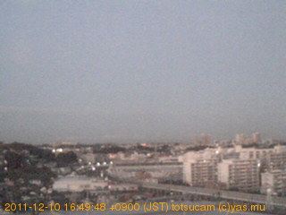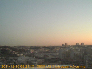 横浜市戸塚駅周辺から 東戸塚方面(北北東)を望む展望カメラの映像です。 左は現在の映像です。 下に並んでいるのは、 7日間に亘る日の出どき、昼間、夕暮れどきの写真(サムネイル)です。 それぞれ、日の出15分前、南中時、日没20分後の写真となっています。 各写真の下にはmpeg形式の動画へのリンクがあります。 それぞれ、日の出、南中、日没の前後1時間の画像です。 右欄にはその日24時間の動画へのリンクがあります。 この7日間以外は日付が一覧表示されています。 日付部分をクリックすると、 その日付から7日分が展開されて表示されます。