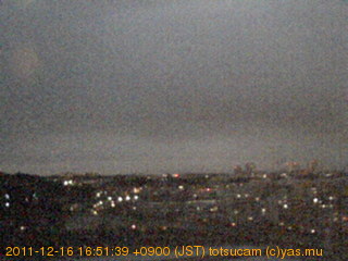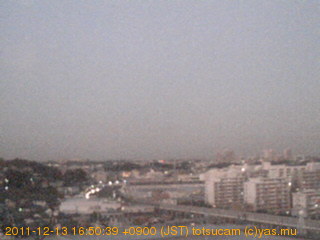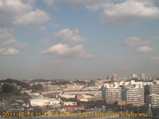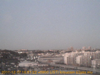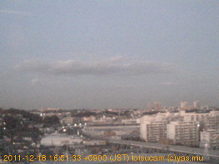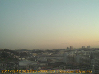 横浜市戸塚駅周辺から 東戸塚方面(北北東)を望む展望カメラの映像です。 左は現在の映像です。 下に並んでいるのは、 7日間に亘る日の出どき、昼間、夕暮れどきの写真(サムネイル)です。 それぞれ、日の出15分前、南中時、日没20分後の写真となっています。 各写真の下にはmpeg形式の動画へのリンクがあります。 それぞれ、日の出、南中、日没の前後1時間の画像です。 右欄にはその日24時間の動画へのリンクがあります。 この7日間以外は日付が一覧表示されています。 日付部分をクリックすると、 その日付から7日分が展開されて表示されます。