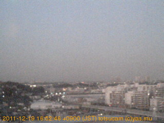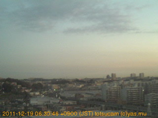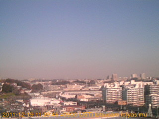 横浜市戸塚駅周辺から 東戸塚方面(北北東)を望む展望カメラの映像です。 左は現在の映像です。 下に並んでいるのは、 7日間に亘る日の出どき、昼間、夕暮れどきの写真(サムネイル)です。 それぞれ、日の出15分前、南中時、日没20分後の写真となっています。 各写真の下にはmpeg形式の動画へのリンクがあります。 それぞれ、日の出、南中、日没の前後1時間の画像です。 右欄にはその日24時間の動画へのリンクがあります。 この7日間以外は日付が一覧表示されています。 日付部分をクリックすると、 その日付から7日分が展開されて表示されます。