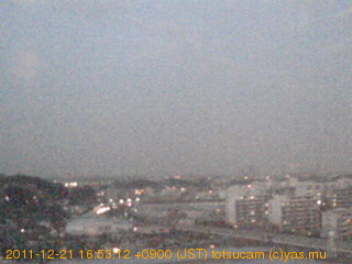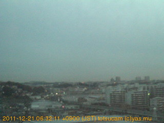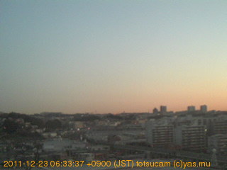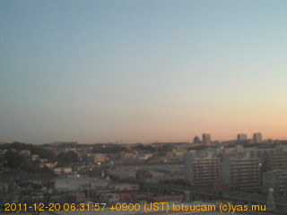 横浜市戸塚駅周辺から 東戸塚方面(北北東)を望む展望カメラの映像です。 左は現在の映像です。 下に並んでいるのは、 7日間に亘る日の出どき、昼間、夕暮れどきの写真(サムネイル)です。 それぞれ、日の出15分前、南中時、日没20分後の写真となっています。 各写真の下にはmpeg形式の動画へのリンクがあります。 それぞれ、日の出、南中、日没の前後1時間の画像です。 右欄にはその日24時間の動画へのリンクがあります。 この7日間以外は日付が一覧表示されています。 日付部分をクリックすると、 その日付から7日分が展開されて表示されます。