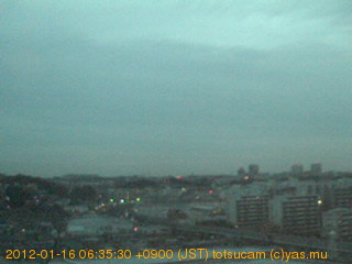 横浜市戸塚駅周辺から 東戸塚方面(北北東)を望む展望カメラの映像です。 左は現在の映像です。 下に並んでいるのは、 7日間に亘る日の出どき、昼間、夕暮れどきの写真(サムネイル)です。 それぞれ、日の出15分前、南中時、日没20分後の写真となっています。 各写真の下にはmpeg形式の動画へのリンクがあります。 それぞれ、日の出、南中、日没の前後1時間の画像です。 右欄にはその日24時間の動画へのリンクがあります。 この7日間以外は日付が一覧表示されています。 日付部分をクリックすると、 その日付から7日分が展開されて表示されます。