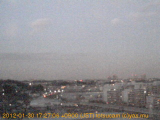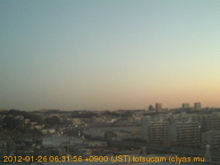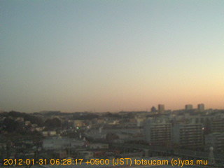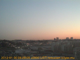 横浜市戸塚駅周辺から 東戸塚方面(北北東)を望む展望カメラの映像です。 左は現在の映像です。 下に並んでいるのは、 7日間に亘る日の出どき、昼間、夕暮れどきの写真(サムネイル)です。 それぞれ、日の出15分前、南中時、日没20分後の写真となっています。 各写真の下にはmpeg形式の動画へのリンクがあります。 それぞれ、日の出、南中、日没の前後1時間の画像です。 右欄にはその日24時間の動画へのリンクがあります。 この7日間以外は日付が一覧表示されています。 日付部分をクリックすると、 その日付から7日分が展開されて表示されます。