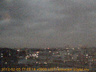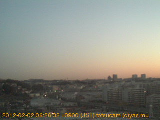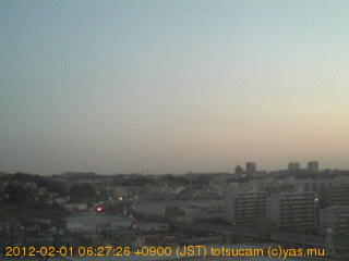 横浜市戸塚駅周辺から 東戸塚方面(北北東)を望む展望カメラの映像です。 左は現在の映像です。 下に並んでいるのは、 7日間に亘る日の出どき、昼間、夕暮れどきの写真(サムネイル)です。 それぞれ、日の出15分前、南中時、日没20分後の写真となっています。 各写真の下にはmpeg形式の動画へのリンクがあります。 それぞれ、日の出、南中、日没の前後1時間の画像です。 右欄にはその日24時間の動画へのリンクがあります。 この7日間以外は日付が一覧表示されています。 日付部分をクリックすると、 その日付から7日分が展開されて表示されます。
