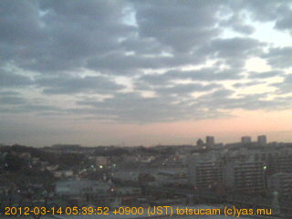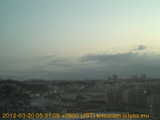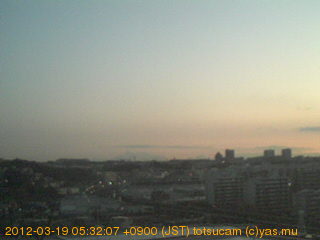 横浜市戸塚駅周辺から 東戸塚方面(北北東)を望む展望カメラの映像です。 左は現在の映像です。 下に並んでいるのは、 7日間に亘る日の出どき、昼間、夕暮れどきの写真(サムネイル)です。 それぞれ、日の出15分前、南中時、日没20分後の写真となっています。 各写真の下にはmpeg形式の動画へのリンクがあります。 それぞれ、日の出、南中、日没の前後1時間の画像です。 右欄にはその日24時間の動画へのリンクがあります。 この7日間以外は日付が一覧表示されています。 日付部分をクリックすると、 その日付から7日分が展開されて表示されます。