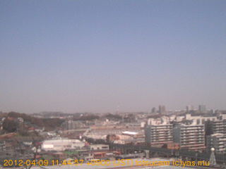 適度に曇った日の雲の動き (例: 2005-10-24) がとても楽しめます。 正面を横切っている高架は横須賀線下りです。 その下に横須賀線上り、東海道線、同貨物線が走っていますが、 高架に隠れていてよく見えません。 夜間は特に中央左寄りの車の動きがよく見えます。